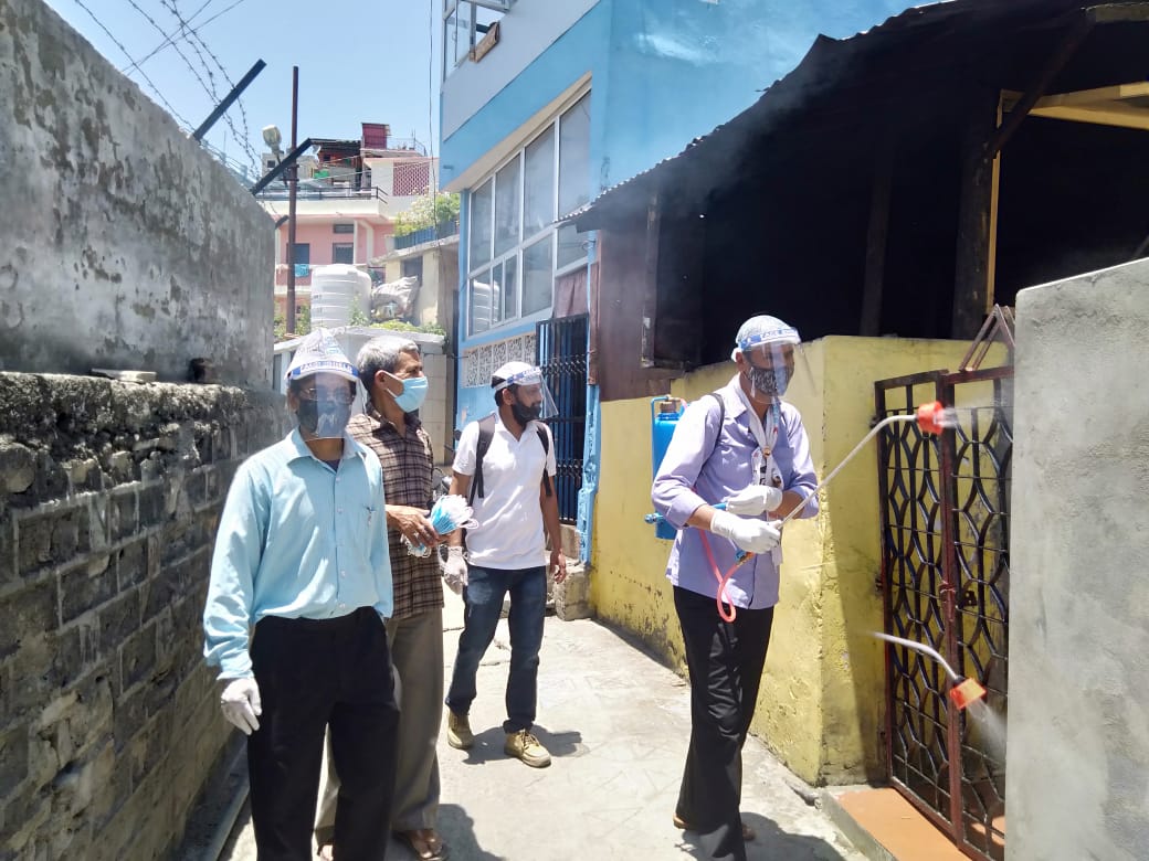 अल्मोड़ा। आज आम आदमी पार्टी अल्मोड़ा द्वारा तीसरे दिन घर घर सैनिटाईजेशन अभियान के तहत पलटन बाजार, थाना बाजार, टम्टा मोहल्ला, नरसिंह बाड़ी, राजपुरा, सरकार की आली, रैलापाली अंतर्गत घर घर जाकर सैनिटाईजेशन कार्य किया गया। जिसमें 4 टीमों के रूप में आप कार्यकर्ताओं ने 4 अलग अलग क्षेत्रों में सैनिटाइजेशन का कार्य किया व जरूरत्मन्दों को राहत सामग्री बांटी।