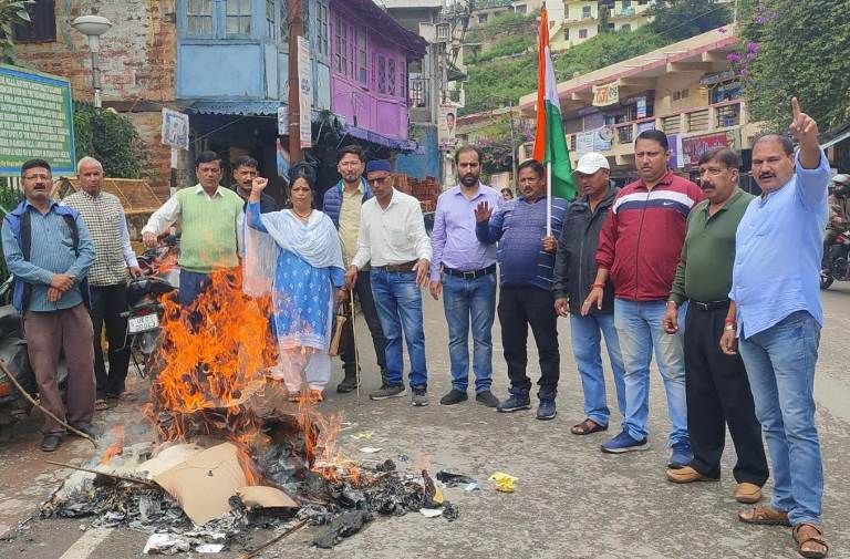 अल्मोड़ा। अंकिता भण्डारी की निर्मम हत्या के विरोध में आज अल्मोड़ा कांग्रेस ने जिलाध्यक्ष पीताम्बर पाण्डेय एवं नगर अध्यक्ष पूरन सिंह रौतेला के संयुक्त नेतृत्व में भाजपा सरकार का पुतला दहन कर अंकिता के हत्यारों को फांसी की सजा देने की मांग की। पुतला दहन से पूर्व कांग्रेसजनों ने जमकर प्रदर्शन करते हुए भाजपा सरकार के खिलाफ जमकर नारेबाजी भी की। इस अवसर पर जिलाध्यक्ष पीताम्बर पाण्डेय ने कहा कि उत्तराखण्ड राज्य में कानून व्यवस्था पूरी तरह से ध्वस्त हो चुकी है तथा बेटी बचाओ-बेटी पढ़ाओ का नारा देने वाली भाजपा सरकार में महिलाओं पर अत्याचार की घटनायें लगातार बढती जा रही हैं। भाजपा सरकार में अपराधियों को संरक्षण दिया जा रहा है। चीला बैराज स्थित भाजपा नेता के रिजार्ट में राज्य की बेटी अंकिता भण्डारी के साथ हुई जघन्य अपराध की घटना इसका जीता जागता उदाहरण है। नगर अध्यक्ष पूरन सिंह रौतेला ने कहा कि भाजपा की इस सरकार में कानून व्यवस्था पूरी तरह ध्वस्त हो चुकी है। अपराधियों के मन में भय नाम की चीज नहीं है। अंकिता हत्याकांड का अभियुक्त भी भाजपा नेता का पुत्र है। इस सरकार में हमारी बेटियां तक सुरक्षित नहीं हैं। उन्होंने कहा कि अंकिता भण्डारी के हत्यारोपियों को फास्ट ट्रैक कोर्ट में सुनवाई कर फांसी की सजा दी जानी चाहिए। प्रदर्शन एवं पुतला दहन में कांग्रेस जिलाध्यक्ष पीताम्बर पाण्डेय, नगर अध्यक्ष पूरन सिंह रौतेला, जिला वरिष्ठ उपाध्यक्ष तारा चन्द्र जोशी, जिला प्रवक्ता राजीव कर्नाटक, जिला सचिव दीपांशु पाण्डेय, प्रदेश सचिव परितोष जोशी, मोहन सिंह देवली, प्रदीप बिष्ट, विनोद वैष्णव, विक्रम सिंह, बची सिंह नेगी, विनोद सिंह, रमेश नेगी, राबिन भण्डारी, अरविन्द रौतेला, शहाबुद्दीन, जया जोशी सहित अनेकों लोग शामिल रहे।