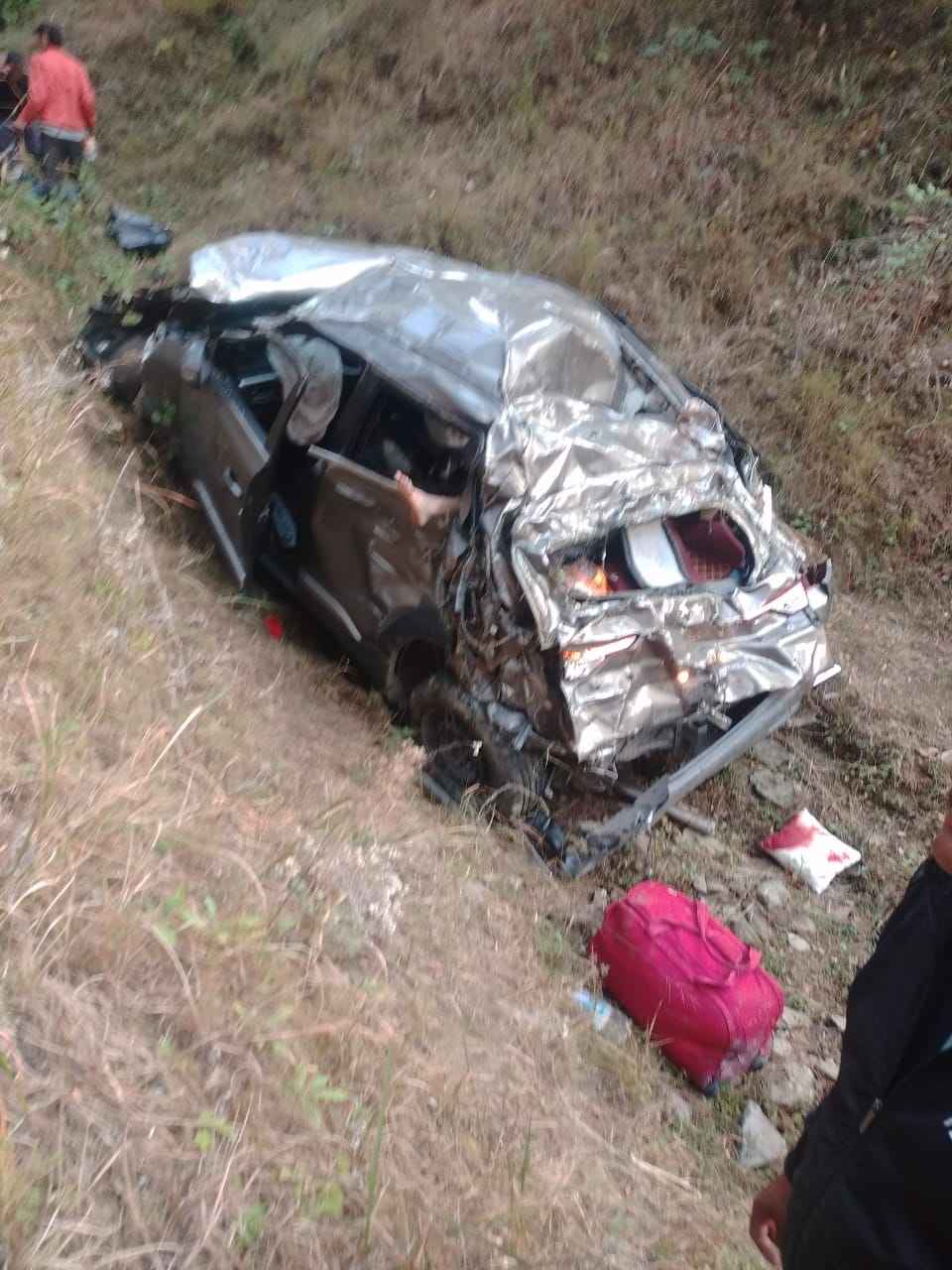 जानकारी के अनुसार वाहन संख्या डीएल 9 सीबीएच 8402 में सवार लोग एक शादी समारोह से लौट रहे थे। बसौली के पास वाहन अनियंत्रित होकर खाई में जा गिरा। वाहन में सात लोग सवार थे, जबकि दुर्घटना के दौरान एक व्यक्ति ऊपर की ओर कूद गया।