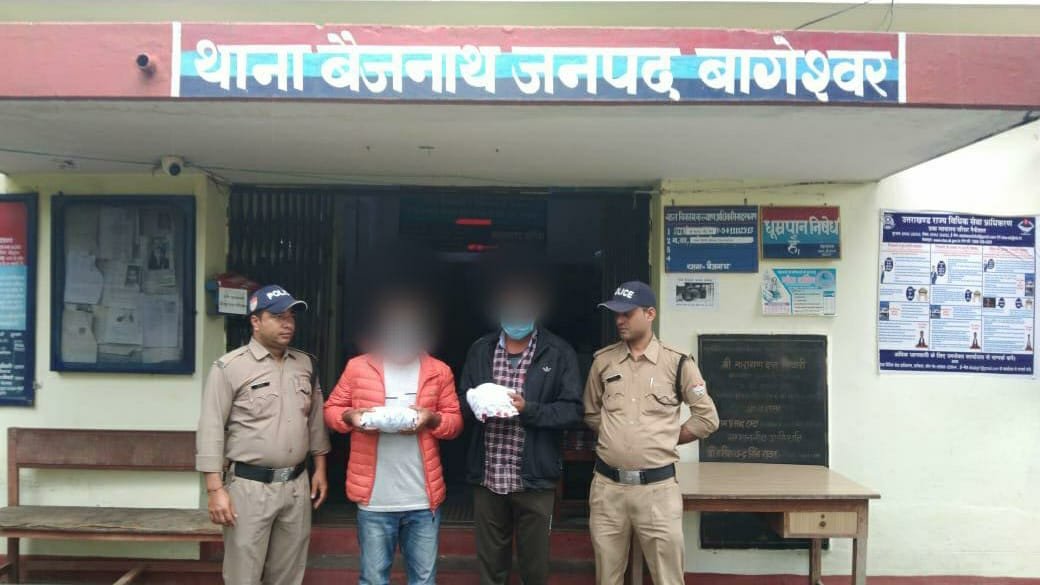 उक्त निर्देशों के क्रम में अशोक कुमार सिंह क्षेत्राधिकारी कपकोट के पर्यवेक्षण में शनिवार 17 सितम्बर को थाना बैजनाथ/A.N.T.F बागेश्वर की सयुंक्त टीम द्वारा थाना क्षेत्रान्तर्गत शान्ति-व्यवस्था एवं अवैध मादक पदार्थों के विरूद्ध चैकिंग अभियान अन्तर्गत मुखबिर की सूचना पर थाना बैजनाथ पुलिस/A.N.T.F की सयुंक्त टीम द्वारा थाना बैजनाथ गेट के पास ऑल्टो कार (बिना नंबर प्लेट) में अभियुक्त भूपाल राम (32 वर्ष) पुत्र विशन राम निवासी- ऐठाड़ (लीमा), थाना- कपकोट, जनपद बागेश्वर के कब्जे से 0.589 किग्रा0 अवैध चरस व दूसरे अभियुक्त राजेश राम (24 वर्ष) उर्फ सोनू पुत्र पुत्र प्रताप राम निवासी ऐठाण(रतमटा) थाना कपकोट जिला बागेश्वर के कब्जे से 1.332 किग्रा0अवैध चरस (कुल बरामद चरस 1.921 किग्रा0) के साथ A.N.T.F/थाना टीम द्वारा अवैध चरस की तस्करी कर रहे अभियुक्तों को मौके से अवैध चरस के साथ गिरफ्तार कर थाना- बैजनाथ में एन0डी0पी0एस0 एक्ट का मुकदमा पंजीकृत किया गया।