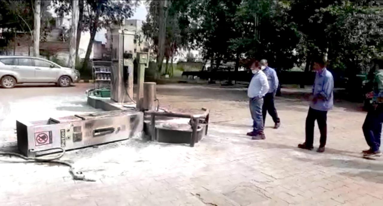 तेल डालते समय आगे बढ़ा ली कार, मशीन नीचे गिरने से हो गया शॉट सर्किट