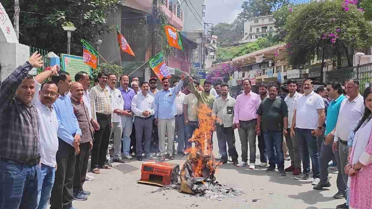 अल्मोड़ा। गैरसैण में आयोजित विधानसभा सत्र के दौरान कांग्रेस विधायकों के कथित अमर्यादित आचरण और सदन की कार्यवाही में बाधा डालने के विरोध में भारतीय जनता पार्टी ने शुक्रवार को चौघानपाटा में कांग्रेस पार्टी और उसके विधायकों का पुतला दहन किया। इस दौरान भाजपा पदाधिकारी और कार्यकर्ता बड़ी संख्या में मौजूद रहे और कांग्रेस के खिलाफ जमकर नारेबाजी की। भाजपा नेताओं ने आरोप लगाया कि हालिया मानसून सत्र के दौरान कांग्रेस विधायकों ने जानबूझकर सदन की कार्यवाही नहीं चलने दी और लोकतांत्रिक गरिमा को ठेस पहुंचाई। वक्ताओं ने कहा कि सदन के भीतर सरकारी संपत्ति को नुकसान पहुंचाना, विकास और जनहित से जुड़े विधेयकों को पारित न होने देना और अराजक माहौल पैदा करना कांग्रेस की गैर-जिम्मेदाराना राजनीति को दर्शाता है। भाजपा पदाधिकारियों ने कहा कि इन घटनाओं से प्रदेश की जनता आहत है और कांग्रेस को पंचायत चुनावों में मिली हार से भी सबक नहीं मिला है। उन्होंने दावा किया कि 2027 के विधानसभा चुनाव में जनता कांग्रेस को करारा जवाब देगी। पुतला दहन कार्यक्रम में भाजपा जिला अध्यक्ष महेश नयाल, पूर्व विधायक रघुनाथ सिंह चौहान, महापौर अजय वर्मा, गोविंद पिल्खवाल, ललित लटवाल, सिकंदर पवार, नगर अध्यक्ष विनीत बिष्ट, जिला महामंत्री धर्मेंद्र बिष्ट, रणजीत सिंह भंडारी, जिला उपाध्यक्ष कैलाश गुरुरानी, पूर्व जिला अध्यक्ष अरविंद बिष्ट, पार्षद अर्जुन बिष्ट, पार्षद अभिषेक जोशी, देवेंद्र भट्ट, मनोज जोशी, मनोज सनवाल, आनंद कनवाल, जगदीश नगरकोटी, दिनेश मठपाल, नगर उपाध्यक्ष दीपा अधिकारी, कमला तिवारी, ग्रामीण मंडल अध्यक्ष नवीन बिष्ट, पूर्व सभासद त्रिलोचन जोशी, मनोज तिवारी, सुनील कर्नाटक, नगर उपाध्यक्ष आनंद भोज, संदीप श्रीवास्तव, प्रधान किशन बिष्ट, मनीष जोशी, विपिन बिष्ट, ललित मेहता समेत कई कार्यकर्ता और पदाधिकारी मौजूद रहे।