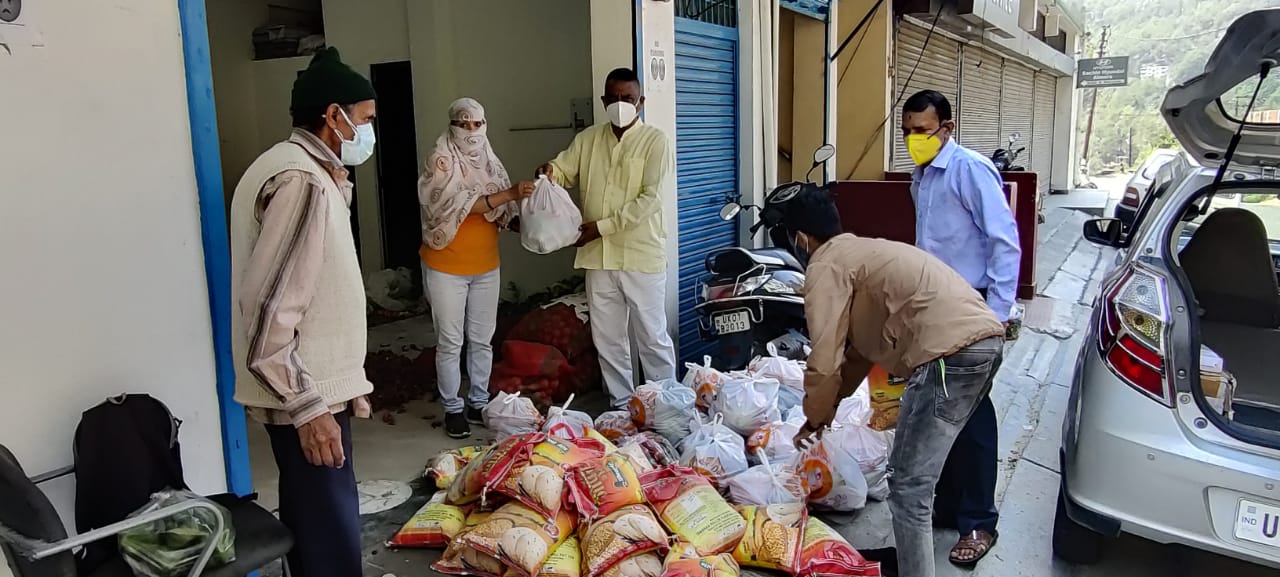 अल्मोड़ा। कोरोना संक्रमण महामारी एवं लाॅकडाउन के कारण प्राइवेट नौकरी पेशा, छोटे दुकानदार, कृषक, मजदूरी का कार्य करने वालों का रोजगार छिन गया है जिस कारण इनके सम्मुख रोजी रोटी का संकट उत्पन्न हो गया है। ऐसी विषम परिस्थिति में विधानसभा क्षेत्र अल्मोड़ा के ग्रामों, कन्टेनमेंट जोन में पूर्व दर्जा मंत्री बिट्टू कर्नाटक द्वारा इन परिवारों में खाद्यान्न सामग्री, सब्जी, मास्क, सैनिटाइजर आदि का वितरित कर पीड़ित परिवारों को सहायता पहुंचाने का कार्य किया जा रहा है।इसी क्रम में दिनांक 27 मई को ग्राम हवालबाग, उढियारी, नशा मुक्ति केंद्र हवालबाग, सिराड और रोडवेज वर्कशॉप में कोरोना संक्रमण से जूझ रहे परिवारों को खाद्य एवं रसद सामग्री वितरित की। उन्होंने कहा कि पहले चरण में कन्टेनमेंट जोन के नागरिकों की सहायता की जा रही है, साथ ही अल्मोड़ा विधानसभा क्षेत्र के अन्तर्गत कोरोना पीड़ित परिवारों को अपने संसाधनों से हर सम्भव सहायता प्रदान किये जाने का प्रयास किया जायेगा। कर्नाटक ने कहा कि अल्मोड़ा नगर में कोरोना संक्रमित व्यक्ति, परिवार जो भोजन पकाने में असमर्थ हैं उनकी आवश्यकतानुसार उन्हें पका हुआ भोजन निःशुुल्क टिफिन के माध्यम से उनके निवास स्थल तक पहुंचाया जायेगा साथ ही भोजन जैसी मूलभूत सुविधाओं से वंचित व्यक्ति उनसे सीधा सम्पर्क कर खाद्यान्न आदि प्राप्त कर सकता है।साथ ही कर्नाटक ने सभी लोगों से अपील की कि इस संकट के दौर में अधिक से अधिक लोगों की सहायता करें और दूसरी लहर में कोरोना पीड़ितों को जो भी संभव मदद हो सके अपने स्तर से करना सुनिश्चित करें।।
