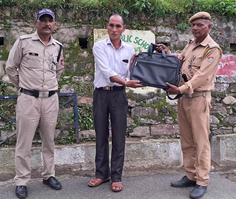 अल्मोड़ा। थाना द्वाराहाट में नियुक्त होमगार्ड दीपचंद पांडे को बाजार क्षेत्र में घटगाड़ तिराहे पर यातायात ड्यूटी के दौरान एक काले रंग का ऑफिस बैग मिला। बैग खोलकर देखा तो उसमें 50,000 ₹ नगद, बैंक पासबुक एटीएम एवं अन्य महत्वपूर्ण अभिलेख थे। होमगार्ड दीपचंद पांडे ने अभिलेखों में अंकित पते के आधार पर बैग के मालिक का पता लगाया और बैग मालिक लाल सिंह पुत्र उमेश सिंह निवासी ग्राम देवराड़ा गूंठ पोस्ट कफड़ा को बुलाकर उनका खोया हुआ बैग नगदी 50,000 ₹ अन्य जरुरी कागजात अभिलेख सुपुर्द किए। नगदी व अन्य सामान सकुशल वापस पाकर मालिक ने होमगार्ड दीपचंद पांडे का आभार जताया। प्रदीप कुमार राय एसएसपी अल्मोड़ा ने होमगार्ड दीपचंद पांडे की प्रशंसा करते हुए कहा आपकी ईमानदारी ने खाकी को गौरवान्वित किया है। होमगार्ड द्वारा दिखाई गई ईमानदारी की थानाध्यक्ष द्वाराहाट राजेंद्र सिंह बिष्ट व स्थानीय जनता ने भी भूरी भूरी प्रशंसा की।
