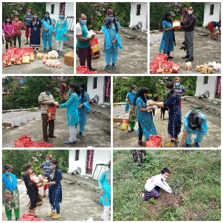 कल्पना कृति जन महिला जागृति समिति द्वारा चलाया जा रहा योग शिविर स्वच्छता अभियान लगातार जारी है।आज दिनांक 29 जून 2021 को प्रातः समिति द्वारा योग शिविर आयोजित किया गया तथा बाद वृक्षारोपण भी किया गया तत्पश्चात कुष्ठ पुनर्वास केंद्र में राशन वितरण किया गया। समिति द्वारा कुष्ठ पुनर्वास केंद्र ढुंगाधारा जाकर वहां निवास कर रहे 13 परिवारों के लिए राशन सामग्री आटा, दाल, चावल, चीनी आदि का वितरण किया। इस अभियान में समिति द्वारा व्यक्तिगत रूप से समिति पदाधिकारियों की ओर से धनराशि एकत्रित की गई जिसमें कमल कुमार बिष्ट, वंदना भंडारी, ज्योति सतवाल, निराजना पांडे, शोभा नगरकोटी, दीपक कांत पांडे आदि लोगों द्वारा धनराशि एकत्रित कर राशन सामग्री वितरण की । महासचिव वंदना भंडारी द्वारा बताया गया कि कोरोना काल में जरूरतमंद लोगों को समिति द्वारा चिन्हित कर राशन तथा आवश्यक सामग्री वितरण की जा रही है एवं यह अभियान जारी रहेगा।