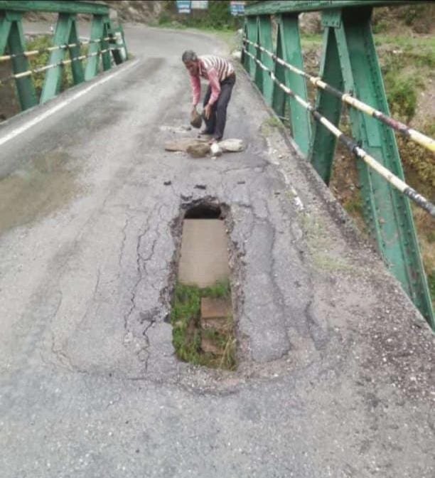 अल्मोड़ा। अल्मोड़ा में प्रवेश करने पर पड़ने वाले क्वारब पुल में बारिश से गड्ढे पड़ गए हैं और पुल क्षतिग्रस्त हो गया है। पुल में गड्ढे पड़ने से वाहनों का चलना संभव नहीं है। पुल के बीच में गार्डर टूटने से एक बड़ा गड्ढा बन गया है। पुल में गड्ढा होने से चालू हालत में नहीं होने से वाहनों को रानीखेत होते हुए हल्द्वानी के लिए भेजा जा रहा है और अल्मोड़ा आने के लिए भी खैरना रानीखेत अल्मोड़ा मार्ग चालू है।