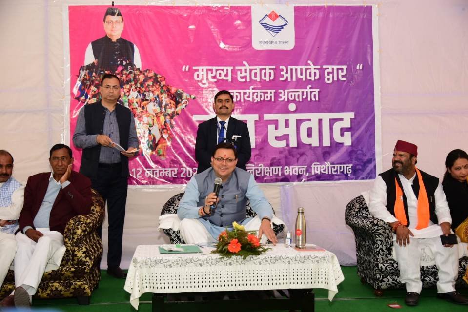 देहरादून। मुख्यमंत्री पुष्कर सिंह धामी ने अपने दो दिवसीय जनपद भ्रमण के दौरान प्रथम दिवस में पिथौरागढ़ स्थित लोनिवि विश्राम गृह में मुख्य सेवक आपके द्वार कार्यक्रम के अंतर्गत आमजन की शिकायतों को सुना। मुख्यमंत्री ने इस अवसर पर जनपद के विभिन्न महिला संगठनों व महिला स्वयं सहायता समूहों के सदस्यों, जनपद के प्रबुद्ध नागरिकों, पूर्व सैनिक संगठन के सदस्यों, व्यापार मंडल के प्रतिनिधियों, प्रधान संगठन के सदस्यों, मेडिकल एसोसिएशन के सदस्यों, सस्ता गल्ला विक्रेता संगठन के सदस्यों आदि से भेंटवार्ता कर उनकी समस्याओं को भी सुना।