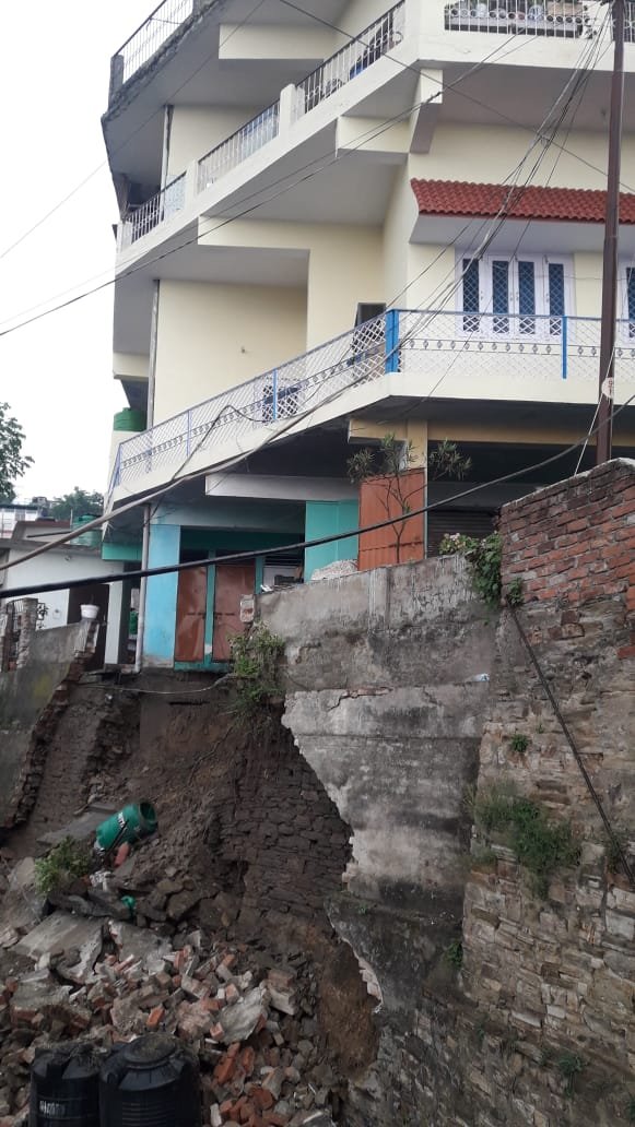 अल्मोड़ा। अल्मोड़ा में आज सोमवार को अचानक आई जोरदार बारिश और ओलावृष्टि में कई आवासीय परिसरों में पानी भर गया और दीवारों में दरारें आ गईं। बारिश के कारण यहां चौघानपाटा स्थित जिला पंचायत आवासीय परिसर के बेसमेंट की दीवार भी धरधरा कर गिर पड़ी, जिस कारण अफरा तफरी का माहौल पैदा हो गया है। दीवार गिरने से तीन परिवारों के अवासों को नुकसान पहुंचा है और निचले तल में स्थित अधिकांश कमरों में बरसाती पानी व मलबा घुस आया है। वहीं समूचे भवन को भी खतरा पैदा हो गया है। ज्ञात रहे कि यहां जिला पंचायत के आवासीय भवन हैं और आस पास कई व्यावसायिक प्रतिष्ठान भी हैं। अचानक तेज बारिश में दीवार ढह जाने से लोगों की चीख पुकार मच गई। बताया जा रहा है कि बारिश से दीवार ढहने से जिला पंचायत कर्मचारियों के परिवार कमरे के भीतर ही फंस गये हैं। प्रभावितों में शोभा, गुड्डू व बब्लू का परिवार बताया जा रहा है। इधर फिलहाल बारिश रूकी है और आस पास के लोग मदद को पहुंचे हुए हैं। इधर नगर के विभिन्न मोहल्लों में तेज बारिश के चलते कई लोगों के घरों में बरसाती पानी घुस आया है। छुटपुट नुकसान की भी सूचना है। इधर आपदा कंट्रोल रूम में भी सूचना कर दी गई है।