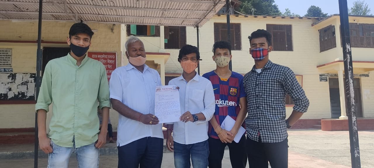 जिसमें अल्मोड़ा विश्वविद्यालय में अध्ययनरत छात्र- छात्राओं की परीक्षाओं संबधित भ्रांतियों को तत्काल दूर करने, ऑनलाइन पढ़ाई को सुदृढ़ करने व ऑफलाइन क्लासेज का संचालन करने तथा प्रमोट किए गए छात्र छात्राओं का परीक्षाफल जल्द घोषित करने की माँग की गई। ज्ञापन देने वालों में गौरव भंडारी, सुंदर बोरा, चिराग जोशी, फैजल, उम्मीद धामी, विकास बोरा, भावेश बिष्ट, पंकज जोशी आदि छात्र मौजूद रहे।