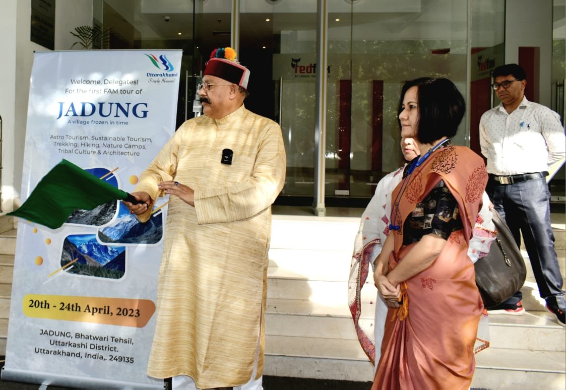 देहरादून। पर्यटन मंत्री उत्तराखण्ड सरकार सतपाल महाराज ने आज जनपद देहरादून अवस्थित एक स्थानीय होटल से ‘‘जादोंग, फैम ट्रिप’’ को हरी झण्डी दिखाकर 25 सदस्यों के दल को रवाना किया। इस अवसर पर पर मंत्री ने कहा कि राज्य के सीमान्त क्षेत्रों को पर्यटन से जोड़ने तथा ऐसे क्षेत्रों में सक्रियता बढाने के प्रयास राज्य सरकार द्वारा किये जा रहे। कहा कि राज्य के सीमान्त जो जादोंग जैसे और भी गांव है, जहां पर्यटन के परिदृश्य से विकसित किया जाएगा तथा की सक्रियता बढेगी, जो पलायन हुआ वह वापस लौटेंगे। उन्होंने कहा कि हमारे राज्य के ऐसे सुदुर गांव को दिखाने की जरूरत है, जिससे वहां पर्यटन की सक्रियता बढे।