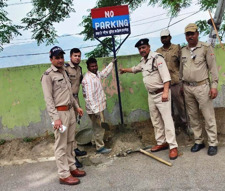 अल्मोड़ा। जनपद के नवनियुक्त एसएसपी राम चन्द्र राजगुरु द्वारा नगर अल्मोड़ा में सुगम एवं निर्बाध यातायात व्यवस्था हेतु विभिन्न स्थानों पर सड़क किनारे खड़े वाहनों से लगने वाले जाम के दृष्टिगत उक्त वाहनों को सड़क किनारे से हटाकर नो पार्किग के बोर्ड लगाने हेतु निरीक्षक यातायात को निर्देशित किया गया है। निरीक्षक यातायात गणेश सिंह हरड़िया के नेतृत्व में यातायात पुलिस अल्मोड़ा द्वारा नगर अल्मोड़ा के ऑफिसर कॉलोनी, वन विभाग कार्यालय के पास, साई मंदिर एडम्स स्कूल के पास व जेल रोड प्रेम कुटीर के पास नो पार्किंग के बोर्ड लगाए गए तथा लोगों को उक्त नो पार्किग स्थानों पर वाहन खड़ा नहीं करने की हिदायत दी गई। उक्त कार्यवाही के दौरान टीएसआई सुमित कुमार पाण्डे, हैड कांस्टेबल मनोहर राम व कांस्टेबल राजेन्द्र नाथ मौजूद रहे।