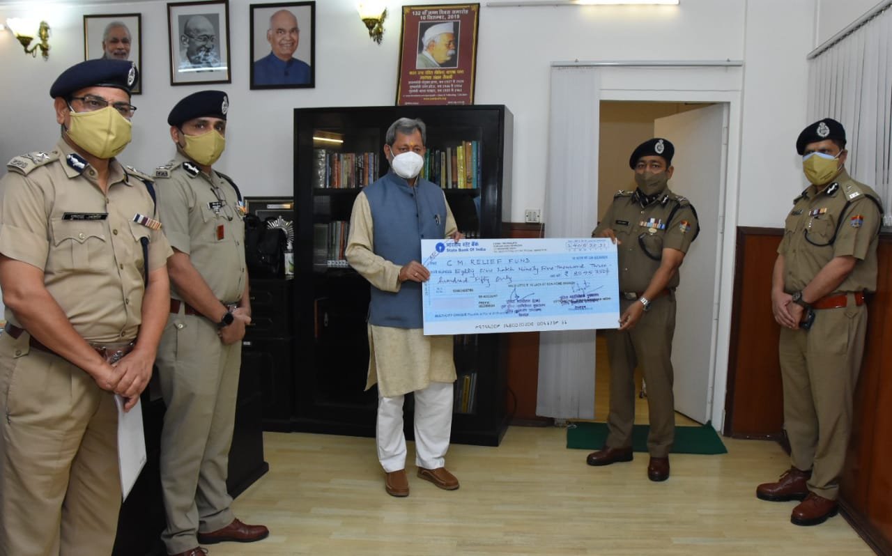 देहरादून। उत्तराखंड पुलिस के कार्मिकों ने कोविड -19 से पैदा हालात को देखते हुए सीएम राहत कोष में अपना एक दिन का वेतन दिया है। मंगलवार को डीजीपी अशोक कुमार ने सीएम तीरथ सिंह रावत से भेंट कर राहत कोष के लिए 85 लाख 95 हजार 350 रुपए का चेक सौंपा। डीजीपी ने बताया कि पुलिस के सभी कार्मिकों ने स्वेच्छा से एक दिन का वेतन राहत कोष में देकर उदाहरण पेश किया है। उन्होंने कहा कि कोविड कर्फ्यू के दौरान पुलिस ने मिशन हौसला के जरिए सैकड़ों लोगों को चिकित्सकीय सुविधा उपलब्ध कराने में सहायता प्रदान की। इस मौके पर एडीजी पीवीके प्रसाद, एडीजी अभिनव कुमार,आईजी पुष्पक ज्योति भी मौजूद रहे।